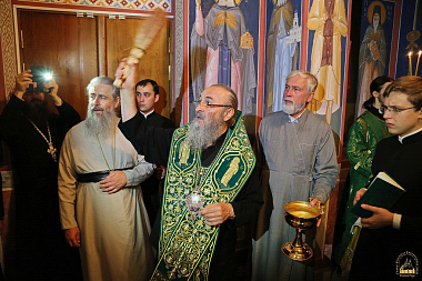 Всенощное бдение в обители 23 сентября совершил митрополит Одесский и Измаильский Агафангел в сослужении сонма архиереев Украинской Православной Церкви.