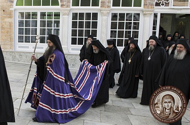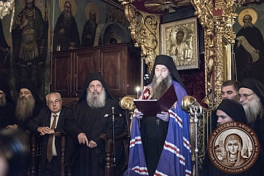 По совершении чина интронизации новопоставленный игумен Пантелеимонова монастыря священноархимандрит Евлогий обратился к собравшимся с ответным словом.