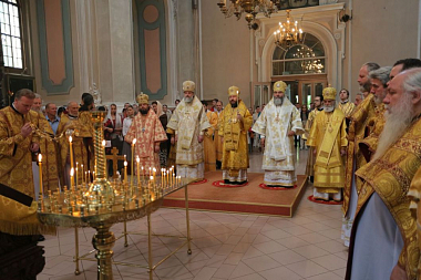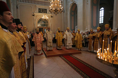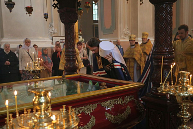 Я очень рад приветствовать владыку Филарета, который впервые в этой святой обители, но признался мне, что давно мечтал ее посетить. И, конечно, я благодарен митрополиту Иннокентию, архипастырю этой епархии, который оказал всем нам сегодня гостеприимство. Владыка нас пригласил, благословил совершить Божественную литургию у мощей святых мучеников и помолиться за нашу святую Церковь, а также совершить молитву о тех усопших братьях, которых мы помним, любим и храним в своем сердце.