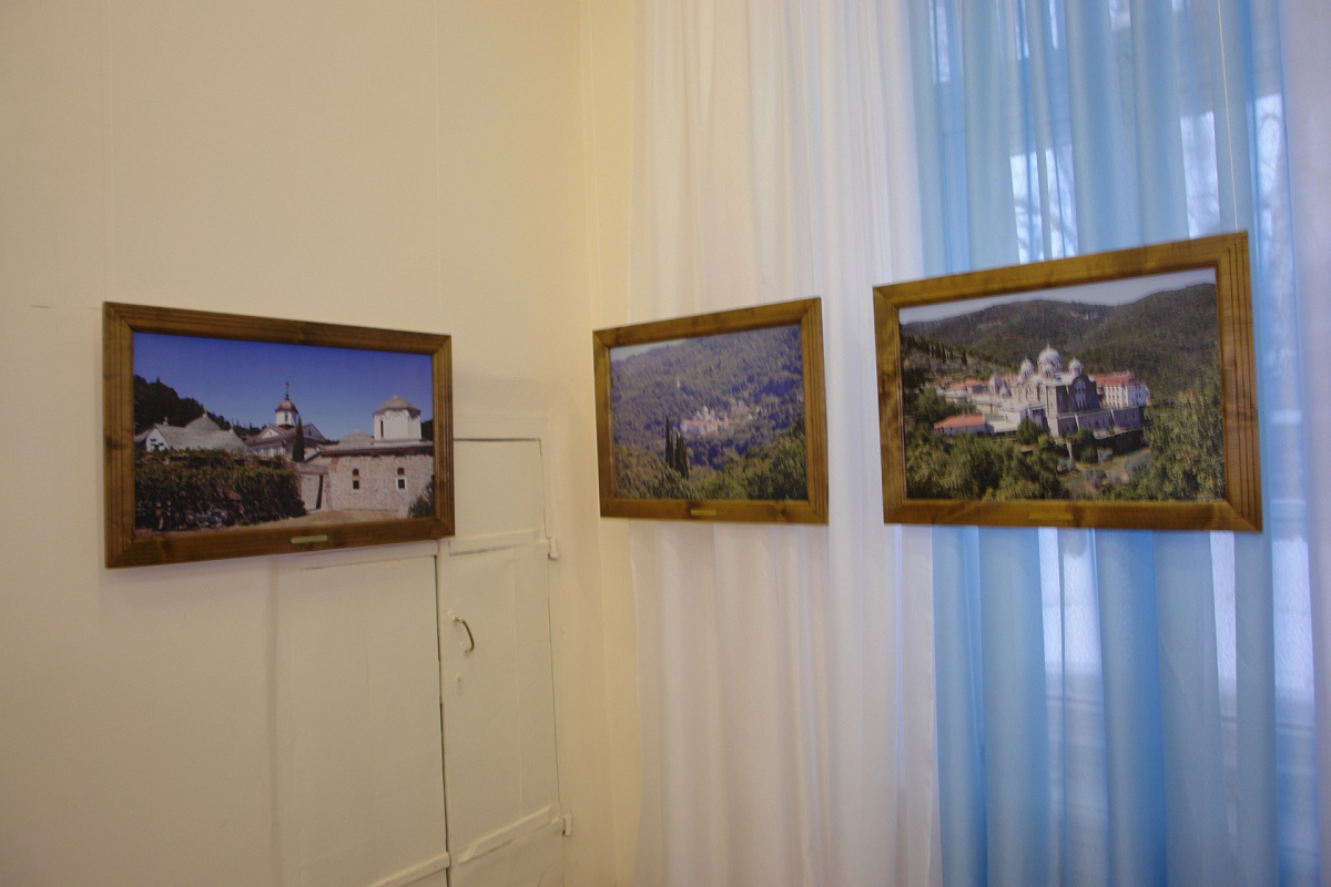 На выставке представлены фотокартины сербского фотохудожника Миодрага Бранковича, который более двадцати лет посещает и фотографирует Святую Гору Афон.