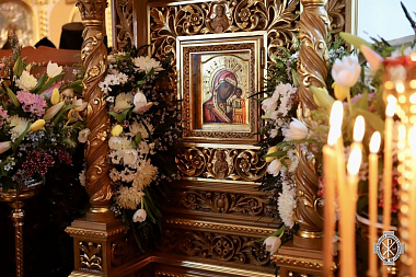 После отпуста собор духовенства и многочисленные паломники торжественной процессией направились от дверей собора к Казанскому храму, где перед Казанским образом Пресвятой Богородицы было пропето величание и возглашены уставные многолетия.