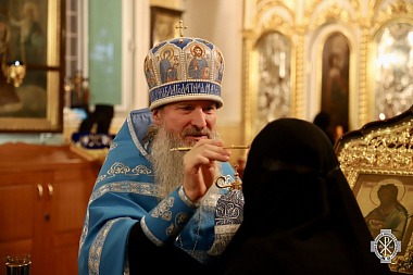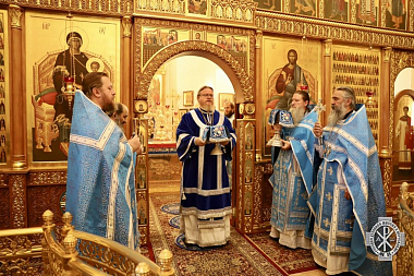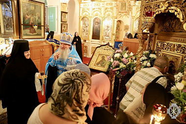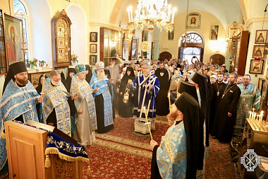 За всенощным бдением согласно монастырской традиции состоялся крестный ход вокруг Казанского храма. Во время четырех остановок были возглашены четыре прошения литии, а перед входом в храм было совершено благословение хлебов, пшеницы, вина и елея.
