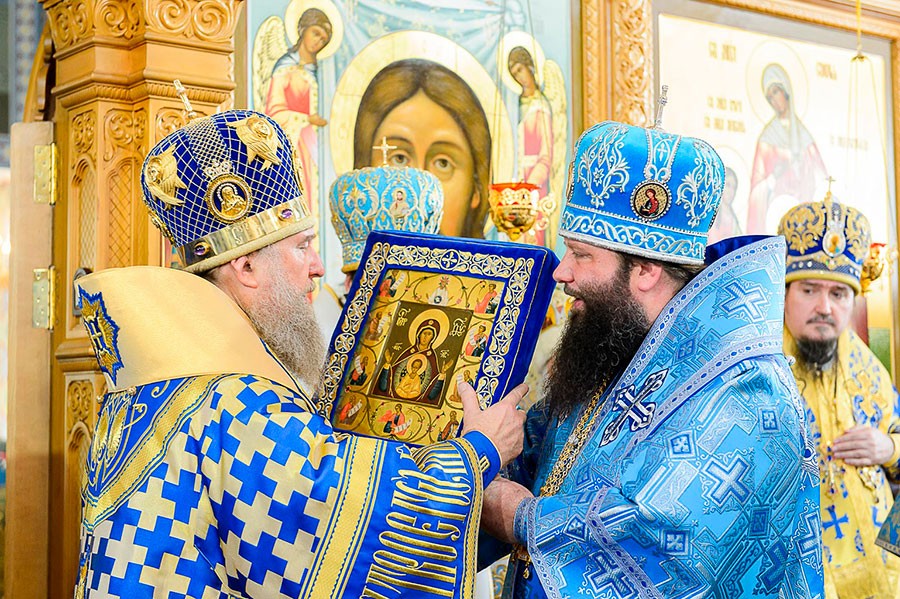 Представитель митрополита Восточно-Американского и Нью-Йоркского Илариона епископ Манхэттенский Николай, викарий Восточно-Американской епархии, огласил приветствие Первоиерарха Русской Православной Церкви Заграницей по случаю принесения в Казахстан чудотворного Курского-Коренного образа Богородицы «Знамение». На молитвенную память Преосвященный владыка передал главе Митрополичьего округа список с чудотворной Курской иконы «Знамение».