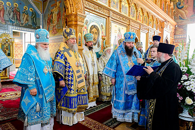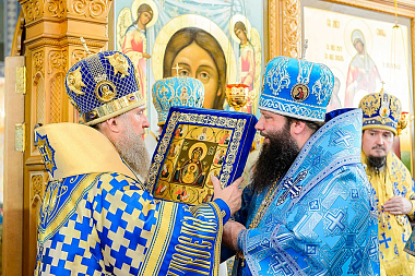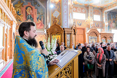 По запричастном стихе было оглашено обращение митрополита Астанайского и Казахстанского Александра по случаю принесения в Казахстан чудотворной Курской-Коренной иконы Пресвятой Богородицы.