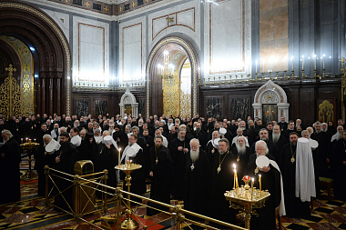 Начало заседаний предварила Божественная литургия в Храме Христа Спасителя, которую совершили ключарь кафедрального собора протоиерей Михаил Рязанцев и московское духовенство. За Литургией молились Святейший Патриарх Московский и всея Руси Кирилл и прибывшие на Архиерейский Собор иерархи.