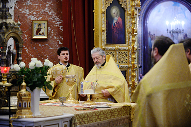 По окончании Литургии состоялась встреча честных мощей святителя Тихона, которые были принесены в Храм Христа Спасителя из Донского монастыря.