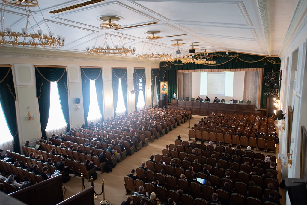 16 октября 2019 года в Большом актовом зале Московской духовной академии состоялось пленарное заседание Всероссийской Покровской научно-богословской академической конференции «Современное православное духовничество».