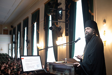 С приветственным словом к собравшимся обратился ректор МДА епископ Звенигородский Питирим.