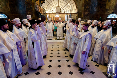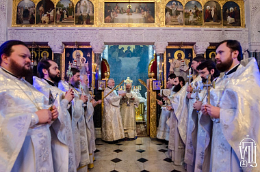 Его Блаженству сослужили наместник Лавры митрополит Вышгородский и Чернобыльский Павел, архиепископ Бучанский Пантелеимон, архиепископ Макаровский Иларий, епископ Гостомельский Тихон, а также братия обители в священном сане.