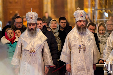 По окончании богослужения Предстоятель Украинской Православной Церкви поздравил верующих с наступающим праздником Рождества и пожелал всем мира в стране и в каждой семье.