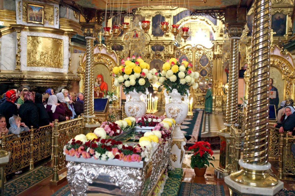 После отпуста духовенство крестным ходом перенесло раку с нетленными мощами преподобного в пещерный храм. Там митрополит Владимир обратился к архиереям и всем присутствующим со словами благодарности за молитву и поздравления.
