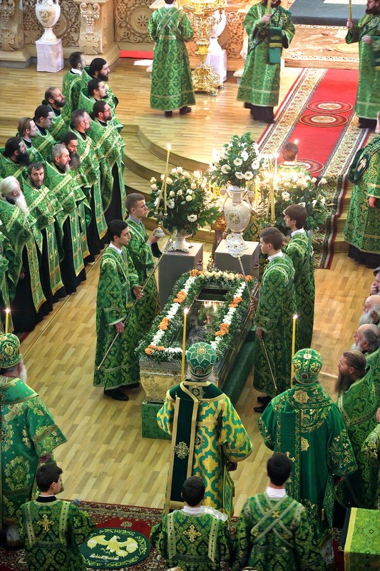 По окончании Литургии был совершен молебен преподобному Амфилохию и состоялся крестный ход с его честными мощами в пещерный храм.