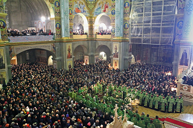 Приветствуя архиереев, духовенство и гостей Лавры с праздником, митрополит Хустский Владимир попросил верующих молиться за Почаевскую обитель и ее насельников.