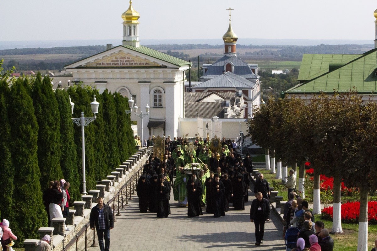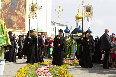 По окончании Литургии состоялся крестный ход по территории лавры с мощами преподобного к Пещерному храму, где был завершен молебен и прочитана молитва перед святыми мощами прп. Иова Почаевского.