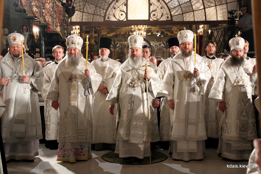 Его Блаженству сослужили: наместник обители митрополит Вышгородский и Чернобыльский Павел; управляющий делами Украинской Православной Церкви митрополит Бориспольский и Броварской Антоний; архиепископ Макаровский Иларий; епископ Ирпенский Климент; духовенство монастыря и гости в священном сане.