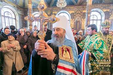 Митрополит Онуфрий совершил славление всем преподобным отцам Киево-Печерским. После отпуста Его Высокопреосвященство поздравил сослуживших архиереев, братию и прихожан с престольным праздником и пожелал всем духовной крепости и посильного подвига во время Великого поста по молитвам преподобных отцев Киево-Печерских.