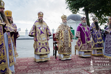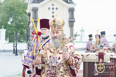 Его Блаженству сослужили митрополит Вышгородский и Чернобыльский Павел, архиепископ Ровеньковский и Свердловский Пантелеимон, епископ Бородянский Варсонофий, гости и братия обители в священном сане.