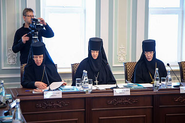 Заместитель председателя Синодального отдела по монастырям и монашеству, настоятельница Зачатьевского ставропигиального женского монастыря Москвы игумения Иулиания (Каледа) сообщила о том, как идет работа над документом «Келейное правило монашествующего», и о промежуточных итогах обсуждения документа «Священнослужение монахов на приходах», которое проходило в рамках мероприятий Синодального отдела по монастырям и монашеству.