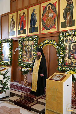 Праздничную Божественную литургию возглавил архимандрит Серафим (Лаврик) в сослужении лаврского духовенства.
