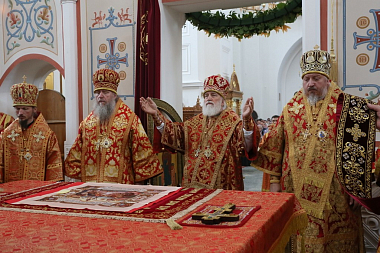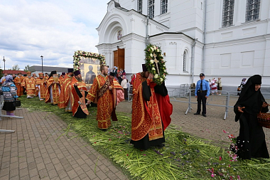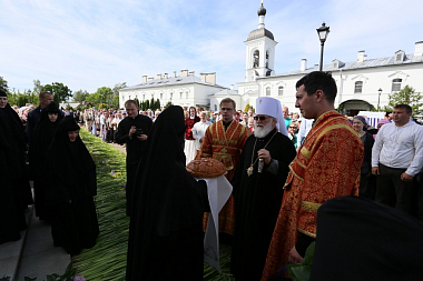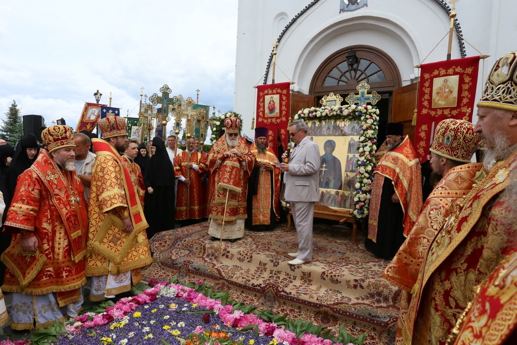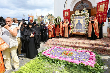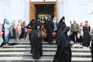 По отпусте Божественной литургии Патриарший экзарх, архипастыри, духовенство и паломники совершили крестный ход, по окончании которого состоялся праздничный молебен в честь преподобной Евфросинии.