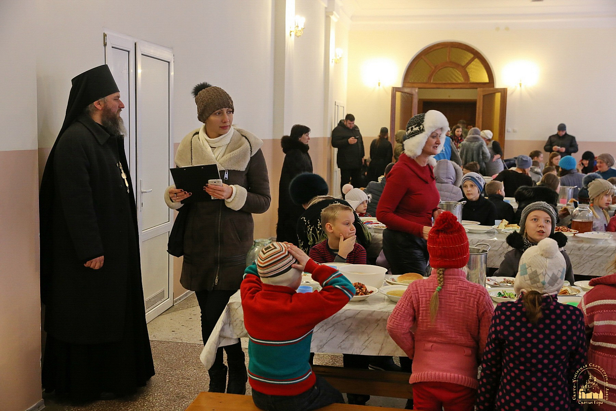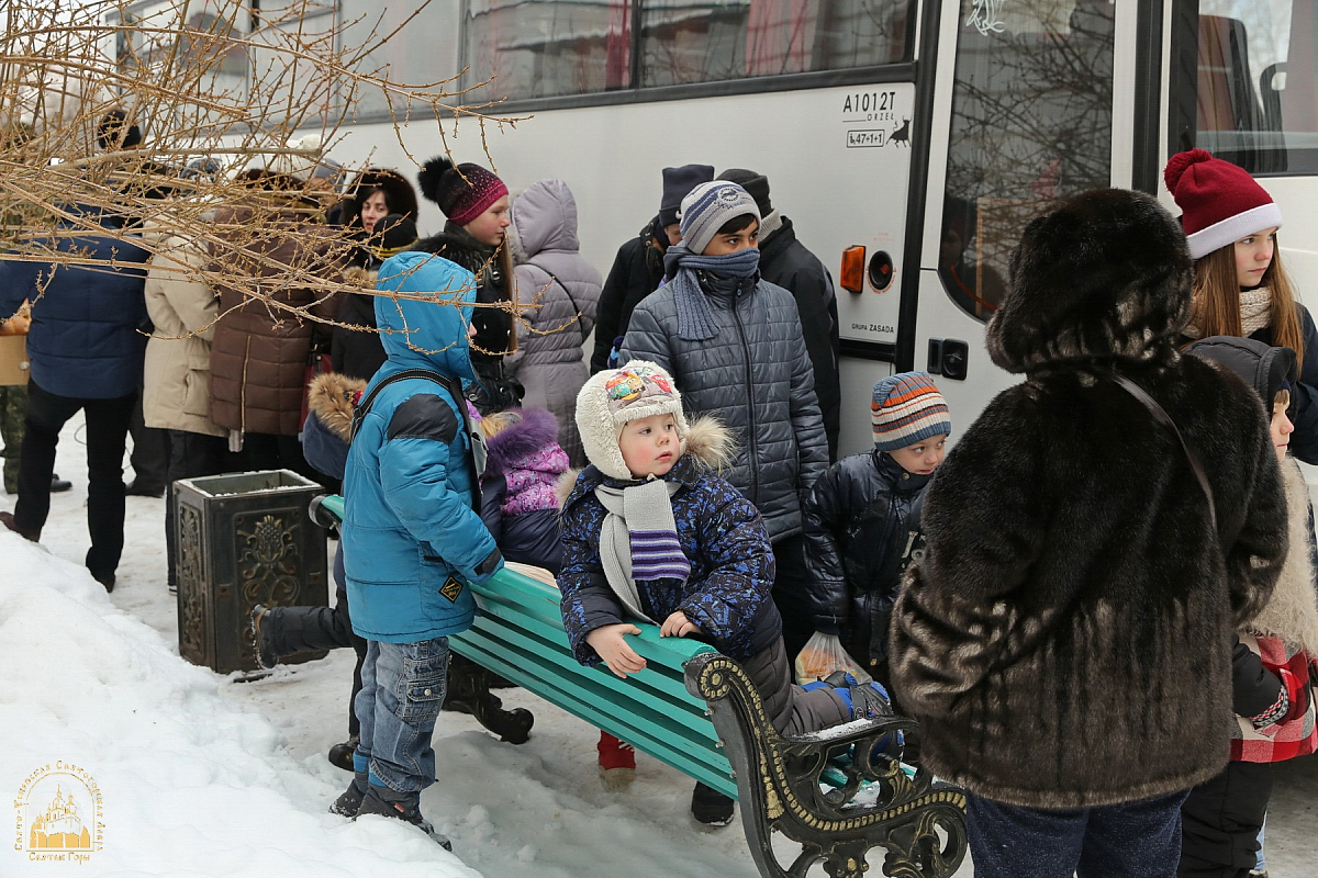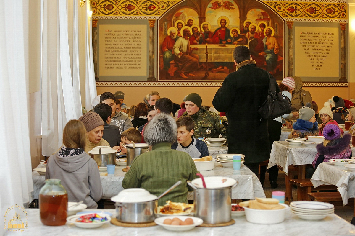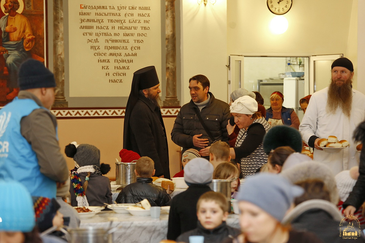 1 февраля 2017 года Свято-Успенская Святогорская Лавра встречала группу беженцев ― несколько десятков детей из обстреливаемой Авдеевки принимали в паломнической трапезной обители.