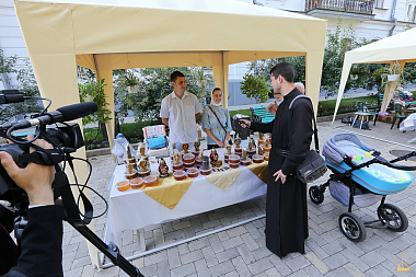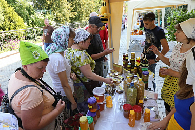 На ярмарке представлена продукция монастырской пасеки Свято-Успенской Святогорской Лавры: множество сортов меда, среди которых большой популярностью пользуется крем-мед (он не содержит в себе крупных кристаллов, но в то же время сохраняет свои вкусовые и лечебные качества).
