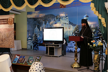 Доклад заведующего музеем и архивом Свято-Успенской Святогорской лавры архимандрита Лазаря (Терещенко) «Опыт работы информационно-просветительского отдела Свято-Успенской Святогорской лавры в 2018 году» был посвящен результатам архивной, исследовательской и издательской деятельности Святогорской обители за текущий год.
