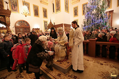 Также в своем поздравительном слове Святогорский митрополит коснулся неизменной темы этих дней – праздничных рождественских колядок. В них, по словам Владыки, народ вложил всю свою любовь и радость к этому святому празднику, к Богомладенцу Спасителю и Пречистой Деве Марии, а также праведному Иосифу Обручнику, пастухам и волхвам, ангелам, которые славили это вселенское событие. Отныне во все дни святок после каждой службы в Святогорской лавре братией будут исполняться колядки, и первые были исполнены после ночной службы в сам праздник Рождества Христова.