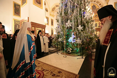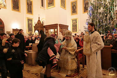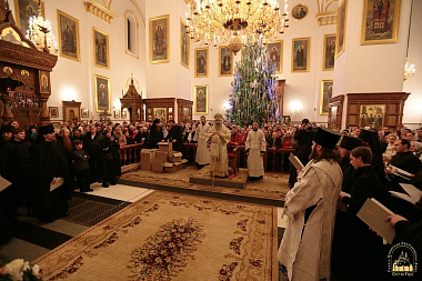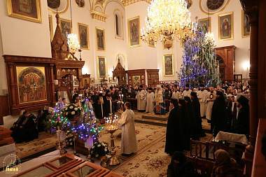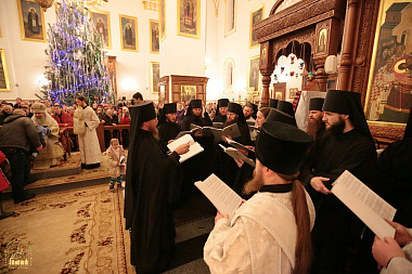Накануне праздника Рождества Христова в Свято-Успенском соборе для тех, кто пожелал за праздничной службой причаститься Святых Христовых Таин, читался чин исповеди. Затем состоялась встреча Святогорского митрополита и далее – праздничное всенощное бдение, которое закончилось около 4-х часов утра. Далее следовали чтения 3-го и 6-го часов и была отслужена Божественная литургия.