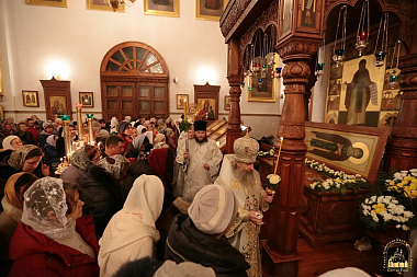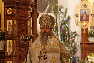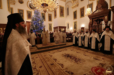 Его Высокопреосвященству сослужили епископ Иннокентий (Шестопаль) и духовенство Святогорской обители. На рождественской ночной службе храм был полон.