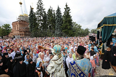 Утром наместник Лавры митрополит Святогорский Арсений в сослужении лаврского духовенства возглавил молебен с водосвятием у фонтана перед Успенским собором. По окончании молебна Его Высокопреосвященство произнес проповедь, посвященную главной святыне Святых Гор – чудотворной иконе Богородицы Святогорской. «Она как Игумения нашей обители, как символ особого присутствия, особого материнского заступления в нашей святой обители Самой Царицы Небесной», – отметил Владыка.
