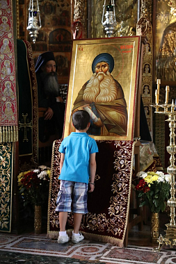 Утром 1 июля иерарх прибыл в монастырь Ватопед, где у святых врат его встречал игумен обители архимандрит Ефрем. Поклонившись святыням главного монастырского храма, владыка имел продолжительную беседу с отцом игуменом, в ходе которой, в частности, обсуждались вопросы, стоящие на повестке дня межправославных отношений.