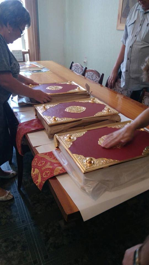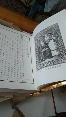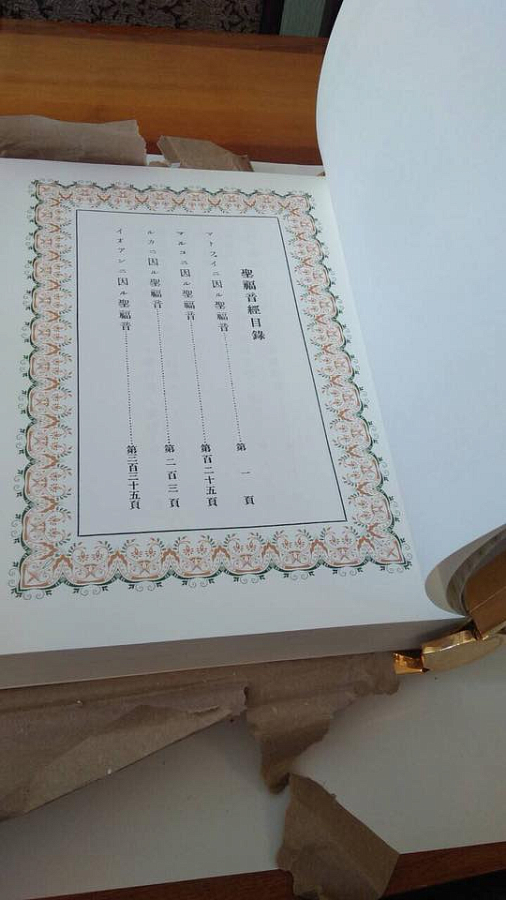 В будущий монастырь было доставлено долгожданное большое напрестольное Евангелие, напечатанное в типографии Свято-Троицкой Сергиевой Лавры на японском языке в переводе святого Николая. Открывается книга по-японски – корешок с правой стороны. Чтение – справа налево и сверху вниз, т.е. традиционное вертикальное письмо. Вес одной книги в переплете составляет 10 килограммов. Тираж издания – десять экземпляров, переплетено в ХПП «Софрино» РПЦ к настоящему времени пока только три. Данные Евангелия будут находиться на престолах в кафедральных соборах трех епархий Японской Православной Церкви: Токийской, Киотосской и Сендайской.
