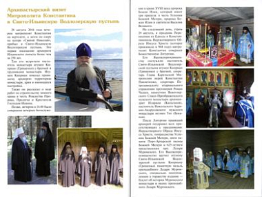 По благословению митрополита Петрозаводского и Карельского Константина опубликован информационный красочный буклет, рассказывающий о Свято-Ильинской Водлозерской мужской пустыни. Издание выпущено к 20-летию основания обители.