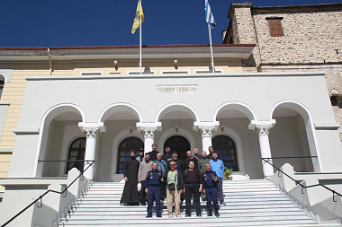 Заключительный день пребывания на Афоне был отмечен для делегации ЦКВ встречей и общением с новоизбранным игуменом Свято-Пантелеимонова монастыря иеродиаконом Евлогием (Ивановым), посещением единственного в мире храма в честь Благоверных русских князей и музея Пантелеимонова монастыря.