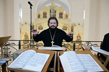 Богослужебные песнопения исполнил хор Московской Духовной академии под руководством иеромонаха Нестора (Волкова).