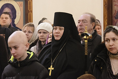 В храме молились настоятельница Кресто-Воздвиженского монастыря игумения Екатерина (Чайникова) и сестры обители.