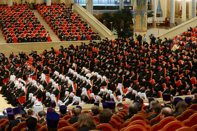 Ваши Святейшества и Блаженства, дорогие Предстоятели Поместных Православных Церквей! Ваши Высокопреосвященства и Преосвященства, досточтимые члены Архиерейского Собора Русской Православной Церкви! Ваши Высокопреподобия и Преподобия, представители духовенства города Москвы! Дорогие отцы, братья и сестры!