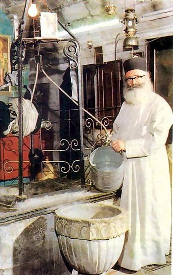 – Дождевой воды в колодце на монастырском дворе не хватало. Поэтому я обратился с просьбой к евреям, и они мне предоставляли еще некоторое количество. Но и этого было недостаточно для нужд монастыря. Тогда я решил копать сухое русло, вади, неподалеку от обители, где, как я слышал, прежде была вода. Копали мы втроем: Шамир – араб, который живет у меня с детских лет, один рабочий, пришедший к нам недавно, и я. Когда мы спустились на 23 метра в глубину, то и следа воды там не нашли. Как сейчас помню, стоял полдень. Я страшно устал и сильно переживал. Присев под диким деревом немного передохнуть, я в сердцах сказал: «Святой мой Герасим, кажется, тебе неугодно, чтобы мы отыскали воду. Если мы не найдет ее и сегодня, я закрываю скважину».
