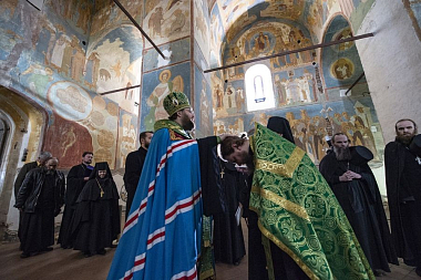 Патриарх приезжал к нам в июне 2018 года, а в октябре того же года решением Священного Синода Ферапонтов монастырь был открыт. Также после визита Святейшего Владыки часть помещений, которые мы просили, нам вернули. Это касается Кирилло-Белозерского монастыря, который Патриарх назвал самым величественным и по размерам, и по состоянию крепостной стены, и по соборным постройкам, добавив при этом, что ничего более грандиозного он не видел. Братия на момент приезда Его Святейшества находилась в чрезвычайно стесненных обстоятельствах. Сейчас мы там немножечко расширяемся. В заключительной фазе находится решение по передаче нам в пользование дополнительных площадей в Ферапонтовом монастыре. Не могу не сказать, что нынешним летом свершилось знаковое для этой древней обители событие. В нее для постоянного пребывания была доставлена часть мощей преподобного Ферапонта Белозерского, Можайского, Лужецкого чудотворца. На Вологодской земле святой основал вместе со своим товарищем преподобным Кириллом Кирилло-Белозерский Успенский монастырь. Через какое-то время, перейдя на новое место подвигов, он основал Ферапонтов Белозерский Богородице-Рождественский монастырь. Затем, по просьбе великого князя Андрея Димитриевича, сына святого благоверного князя Димитрия Донского, создал в Можайске Лужецкую Рождества Богородицы обитель, где почивают его мощи. Но преподобный всей душой хотел вернуться в свой северный монастырь, и его желание спустя века сбылось.