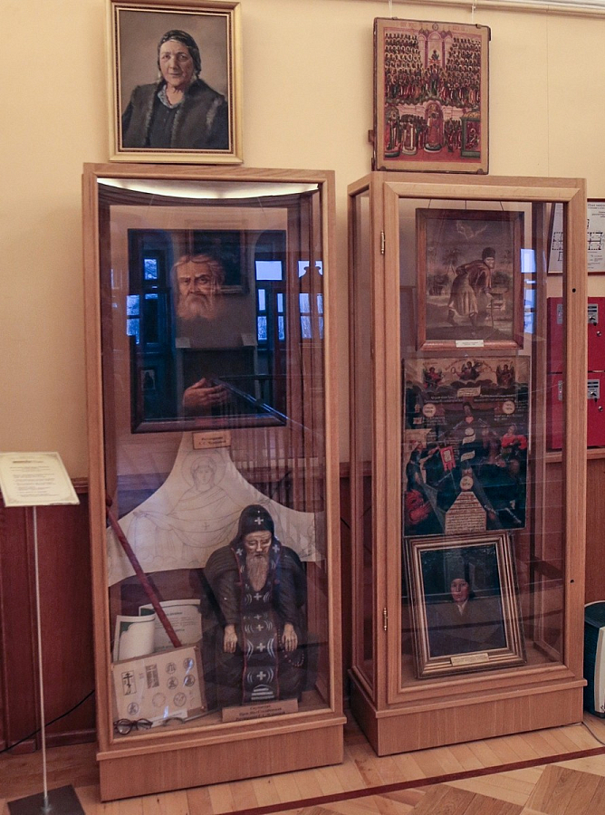 Какой экспонат, какую реликвию здесь ни возьми, сразу понимаешь: это богатейший пласт нашей истории – трудной, зачастую противоречивой, требующей глубокого осмысления с тем, чтобы, понимая прошлое, мы душой устремлялись в будущее. Если перейти из этого зала в следующий, то ваш взгляд непременно упадет на скульптуру святителя Луки (Войно-Ясенецкого), уникальную в своем роде, потому что скульптор Олейников лепил ее не по фотографиям, не по чьим-то воспоминаниям, а с натуры. Святитель Лука, ученый-хирург с мировым именем, был уже в то время епископом, когда скульптор принялся за работу. У нас даже есть снимок, запечатлевший рабочий момент! Но что особенно интересно: в одном углу зала – скульптура Святителя, в другом – письменный стол Святейшего Патриарха Алексия (Симанского) и некоторые мемориальные вещи Его Святейшества. А ведь отношения между ними были непростые, даже тяжелые...