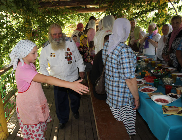 При жизни батюшки на день Ангела к нему собирались люди из разных уголков страны. Отец Савва благословил свою духовную дочь Евфросинию, у которой за городом был домик, принимать гостей после Божественной литургии. Из года в год она вместе со своими тремя дочками накрывала именинный стол, куда мы после богослужения направлялись многочисленной толпой. Там за праздничной трапезой мы поздравляли отца Савву с днем Ангела: читали стихи, написанные в его честь, пели канты, ему посвященные. Всего этого батюшка не мог слышать, потому что, приняв великую схиму, не покидал монастырь. Но духовно он это прозревал и таким образом нас утешал. А для нас общение друг с другом становилось тем, что называют агапой – особой совместной трапезой, «вечерей любви». Участвовали в ней и маленькие детки, и старики, и молодежь, и люди среднего возраста. Теперь духовные чада батюшки собираются в доме у Евфросинии дважды в год: на день Ангела отца Саввы и в день его кончины. Евфросиния уже почила, но привечают гостей ее дочери...