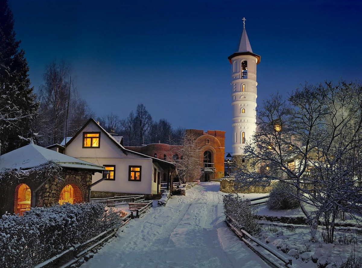 Осенний вечер. Темнеет рано. Монастырь пустеет. Только запоздалые богомольцы, похожие на тени, медленно двигаются по направлению к выходу. Лишь в нескольких окошках монастырских построек еще горит свет. Среди темного вечера, они, словно маяки, на которые держат курс сбившиеся с пути. Кажется, когда терять уже нечего, пропито все, тогда идут на свет этих окошек в Новоспасском.