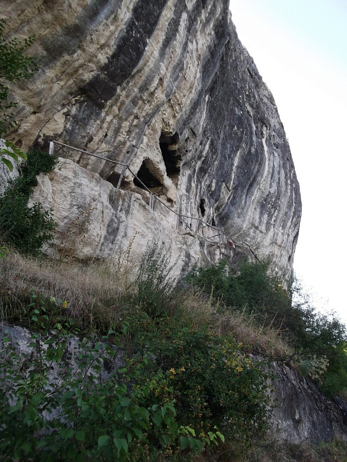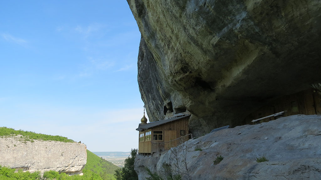 – Может быть, сама здешняя обстановка благоприятствует сосредоточенной молитве. Тут дивная тишина и покой, – продолжает отец Даниил. – Обслуживаем себя  сами – готовим трапезу, стираем, поддерживаем чистоту. Все, что не можем смастерить на месте, тащим на себе снизу. А однажды, на праздник святых первоверховных апостолов Петра и Павла, во время Литургии вдруг слышим, как снизу идут к нам сюда наверх какие-то странные звуки: «Ух-ух, ух-ух, ух-ух!». Оказалось, это восемь паломников из Тернополя тянут на своих плечах купол с крестом, установленный теперь над часовенкой, через которую мы ходим на службу в пещерный храм великомученика Феодора Стратилата.