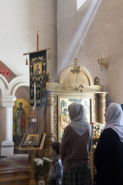 Многое сегодня вспоминается из той поездки в монастырь, который занял в душе особый уголок. И то, как мы зашли в придел святого Иоанна Богослова с улицы – из знойной тридцатиградусной жары попали в царство холода. Матушка Раиса сообщила, что в зимнюю пору, когда на реке ледяной затор и сестринская община на это время уходит «в затвор», то есть полностью прекращается общение с внешним миром (только издали можно видеть заснеженный Гороховец, куда не добраться), этот придел становится центром монастырской жизни, духовным пристанищем. Жарко топится печь, изгоняя из небольшого пространства холод. И такая сосредоточенная молитва устремляется в небо! Никаких мыслей о житейских делах и попечениях: сердце и ум настроены на молитву, которая, по словам преподобного Иоанна Лествичника, «есть не иное что, как отчуждение мира видимого и невидимого»... Вспоминается мне и небольшой рабочий кабинет игумении, занятый в основном книгами – ее верными помощниками в духовном водительстве сестер. Особо «зацепившие» ее мысли, высказывания, матушка выписывает в общую тетрадь, некоторые помечает карандашом в книге. Придет, допустим, к ней сестра со смятением в душе, а матушка, тянущаяся к духовной литературе, как путник в пустыне к живительному источнику, моментально отыщет ответ у святых Отцов, разрешающий недоумение пришедшей. Да и от себя, исходя из своего опыта монашества, что-то добавит. Это ее правило: ни один духовный вопрос не оставлять без ответа. Еще мне вспоминается Божественная литургия в храме «Знамение» Божией Матери, где красиво и слаженно пел сестринский хор. Вот и 9 октября, пока еще не сняли понтонный мост через реку Клязьму (его снимают в конце октября), прихожане наверняка придут и приедут из разных мест, чтобы разделить с сестрами Знаменской обители радость праздника, благоговейно приложиться к чудотворному образу Иоанна Богослова, где святой изображен во весь рост, а с аналойной иконой любимого ученика Спасителя, которая периодически мироточит, совершить крестный ход. Думается, святой апостол и евангелист Иоанн Богослов соберет в этот октябрьский день многих людей на соборную молитву, чтобы любовью к Богу и к ближним, которую он проповедовал до последнего своего вздоха, укрепить прихожан и сестер перед разлукой на зимний период. А зима... Стремительно приближающаяся, она не страшит сестер, потому что опыт «затвора», опыт глубокой смиренной молитвы в приделе Иоанна Богослова у них есть. И это время уединения они воспринимают как благодатное.