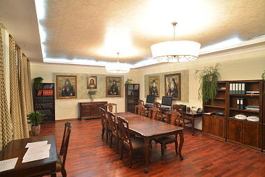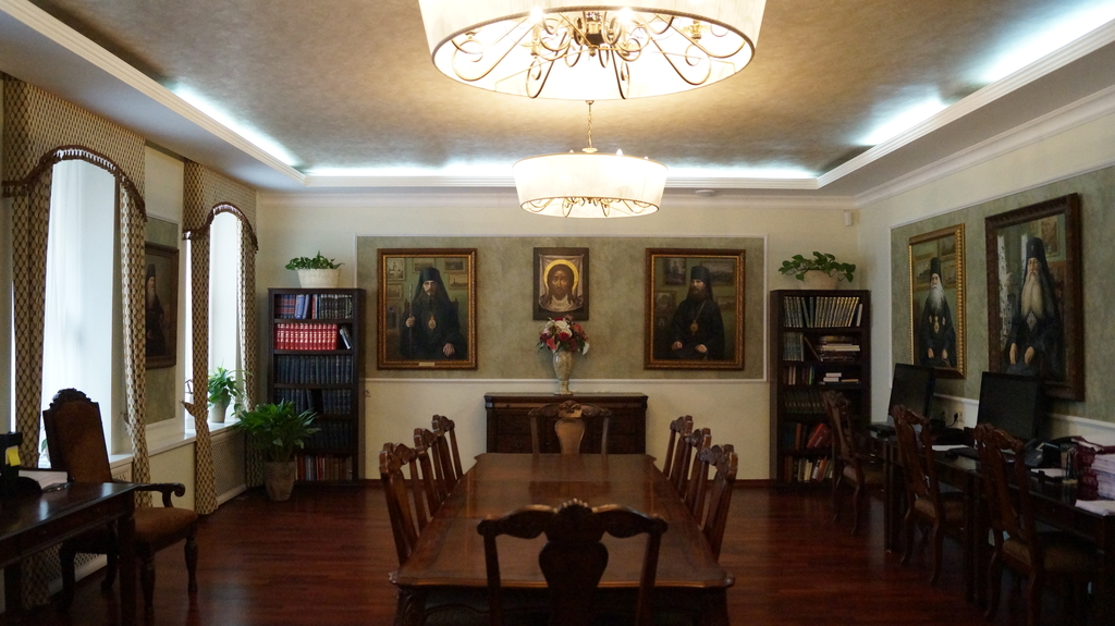 В этом книжном царстве мы защищаем свои дипломные проекты. Круглые столы и совещания, конференции, собрания братии, преподавателей, семинаристов, встречи с гостями проводятся под этими сводами.