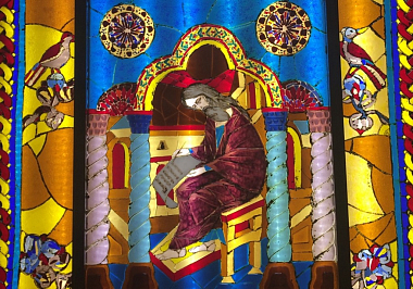 У кабинета ректора лучше замедлить ход, чтобы полюбоваться удивительными витражами работы художника Сергея Николаевича Андрияки, выполненными специально для нашей семинарии.