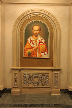 Вернемся на первый этаж и продолжим путешествие. Нас встречают великие учителя и подвижники Церкви — апостол Петр, святитель Иоанн Златоуст, преподобный Серафим Саровский и святитель Тихон, Патриарх Российский. Парсуны с их изображениями находятся в парадном фойе семинарии. К слову, мощи первого после синодального периода патриарха обретались при участии нашего ректора, епископа Тихона (Шевкунова). И наречен ректор именем Тихон как раз в честь святителя.