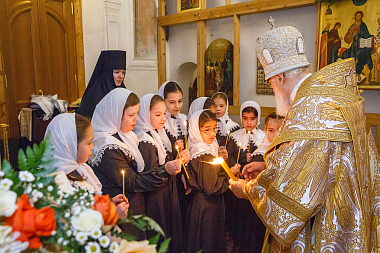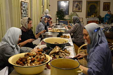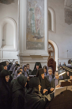 В монастыре с самого первого дня было правилом полностью совершать суточный богослужебный круг. Все сестры, не занятые на неотложных послушаниях, молятся в храме на Литургии.