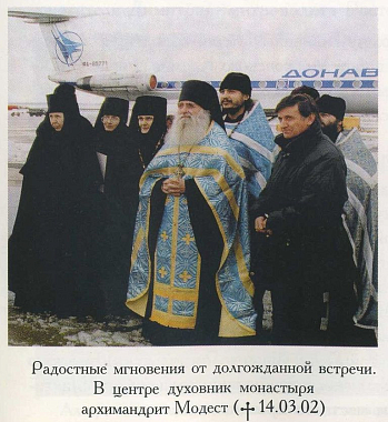 Духовником обители на протяжении нескольких лет был архимандрит Модест (†14.03.2002) – наместник Свято-Донского Старочеркасского мужского монастыря. Отец Модест навсегда останется в памяти сестер как мудрый наставник, любвеобильный пастырь, помогающий обрести заповеданную Христом добродетель любви.